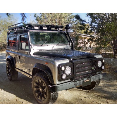 91 LHD Defender 90 200Tdi Station wagon Silver with Black hood and roof. Features an SVX grill with LED lights.  New Sawtooth wheels and BFG ko3 all terrain tires Mantec swing out tire carrier roof rack with ladder.  Black leather interior with Alcantara headliner.New  A/C.